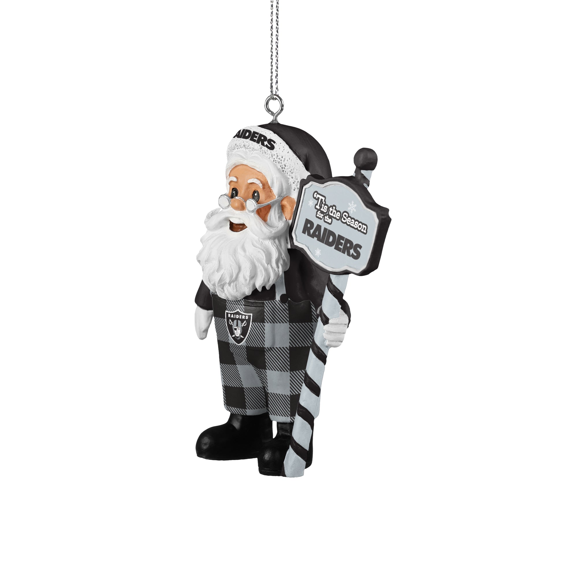 Celebrate the holidays with the Las Vegas Raiders Santa Overalls Ornament by FOCO! This festive ornament is perfect for showcasing your team pride while adding a cheerful touch to your Christmas tree. Crafted from durable 100% resin material, it features vibrant painted and printed graphics that highlight your love for the Las Vegas Raiders. Measuring 3 inches tall, this ornament comes with a convenient string tree hanger for easy display. Whether you're starting a Las Vegas Raiders ornament collection or enhancing your holiday decor, this officially licensed piece is a must-have for every dedicated fan.