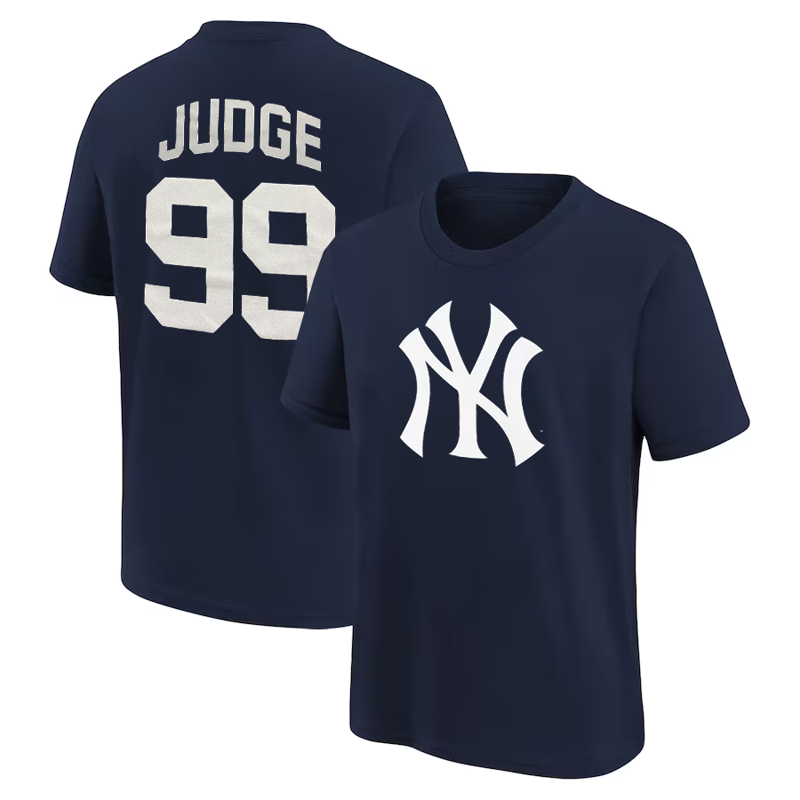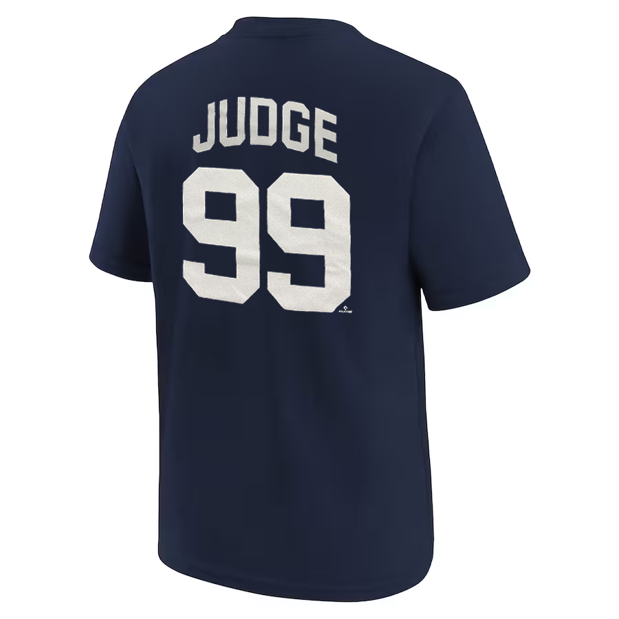 Show off your support for Aaron Judge in the New York Yankees Aaron Judge Name & Number T-shirt. Crafted from soft, short-sleeve cotton, the name and number t-shirt is perfect for any little Yankees fan. Let your kiddo proudly show they're part of the New York Yankees family.