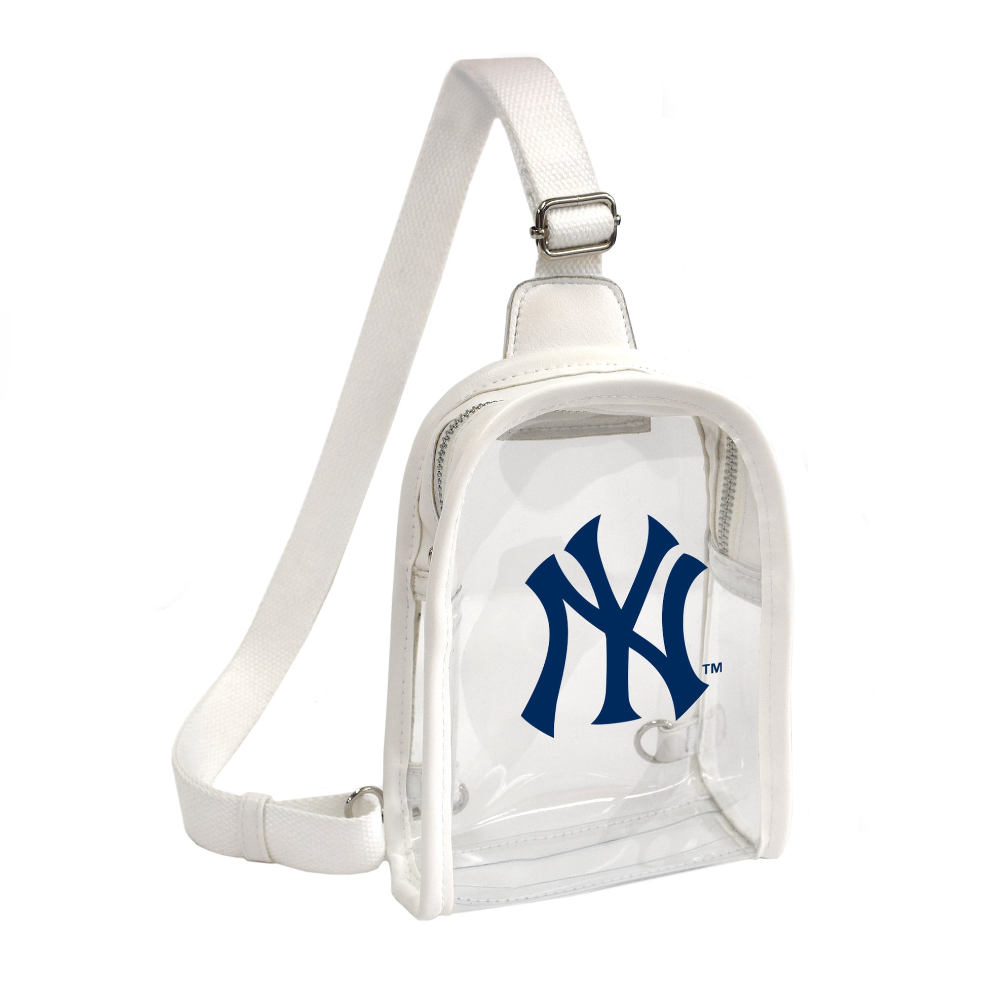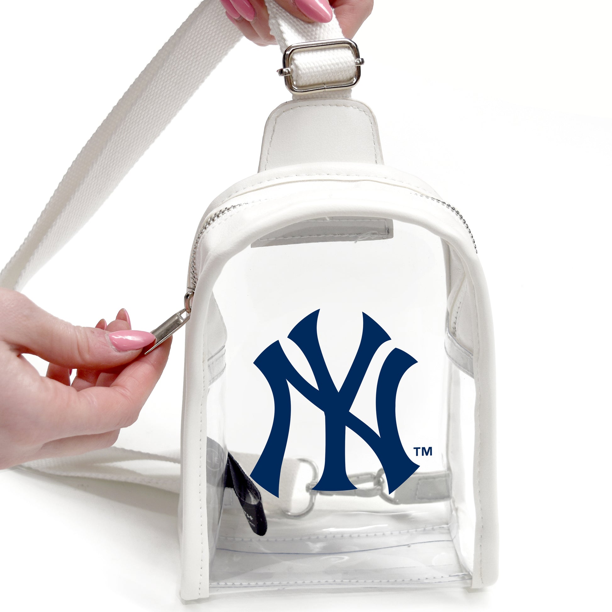 Show your team spirit with the official New York Yankees Clear Mini Sling Bag. Get ready for game day in style and safely, complying with stadium regulations. This must-have clear bag is fashionable with white piping and is a single compartment bag made to withstand the weather so you can enjoy stress-free tailgating. With plenty of room to carry items such as your wallet, tickets, and phone, you'll have everything you need to get through security approved and in style.