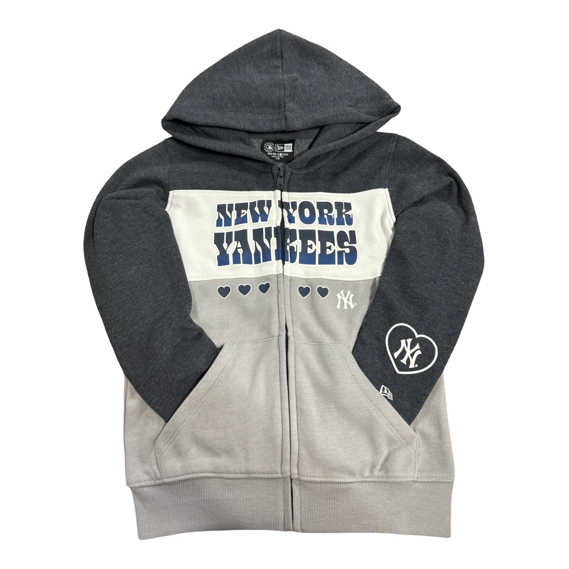 NEW YORK YANKEES GIRLS 2-TONE HEART FULL-ZIP HOODED SWEATSHIRT