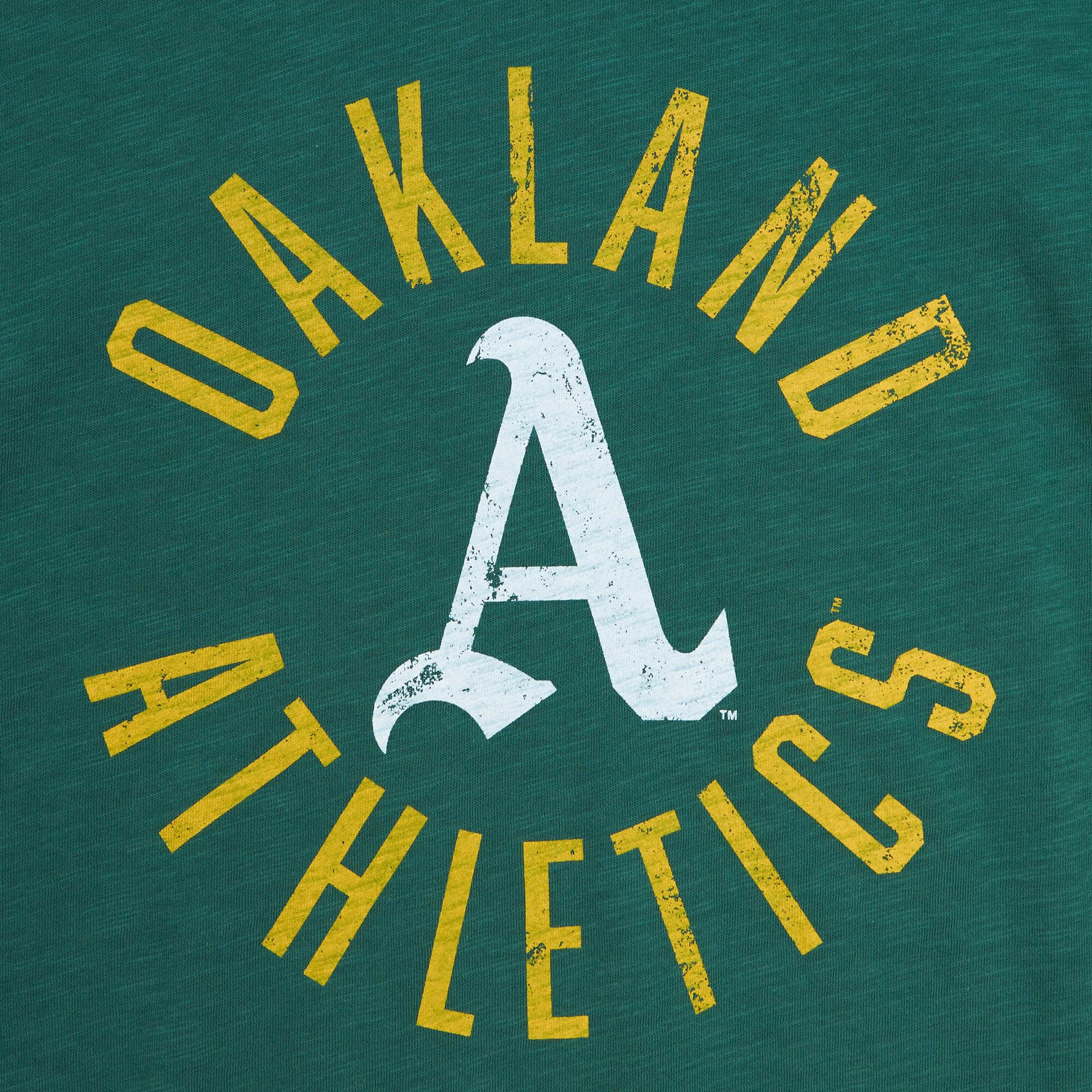 Esta playera flameada legendaria para hombre Oakland Athletics de primera línea de Mitchell and Ness está confeccionada con algodón liviano para salidas cómodas de béisbol. Tiene un diseño desgastado del equipo y está terminado con una etiqueta cosida de tamaño Mitchell and Ness en la parte inferior. Experimenta la calidad de una camiseta Legendary Slub.