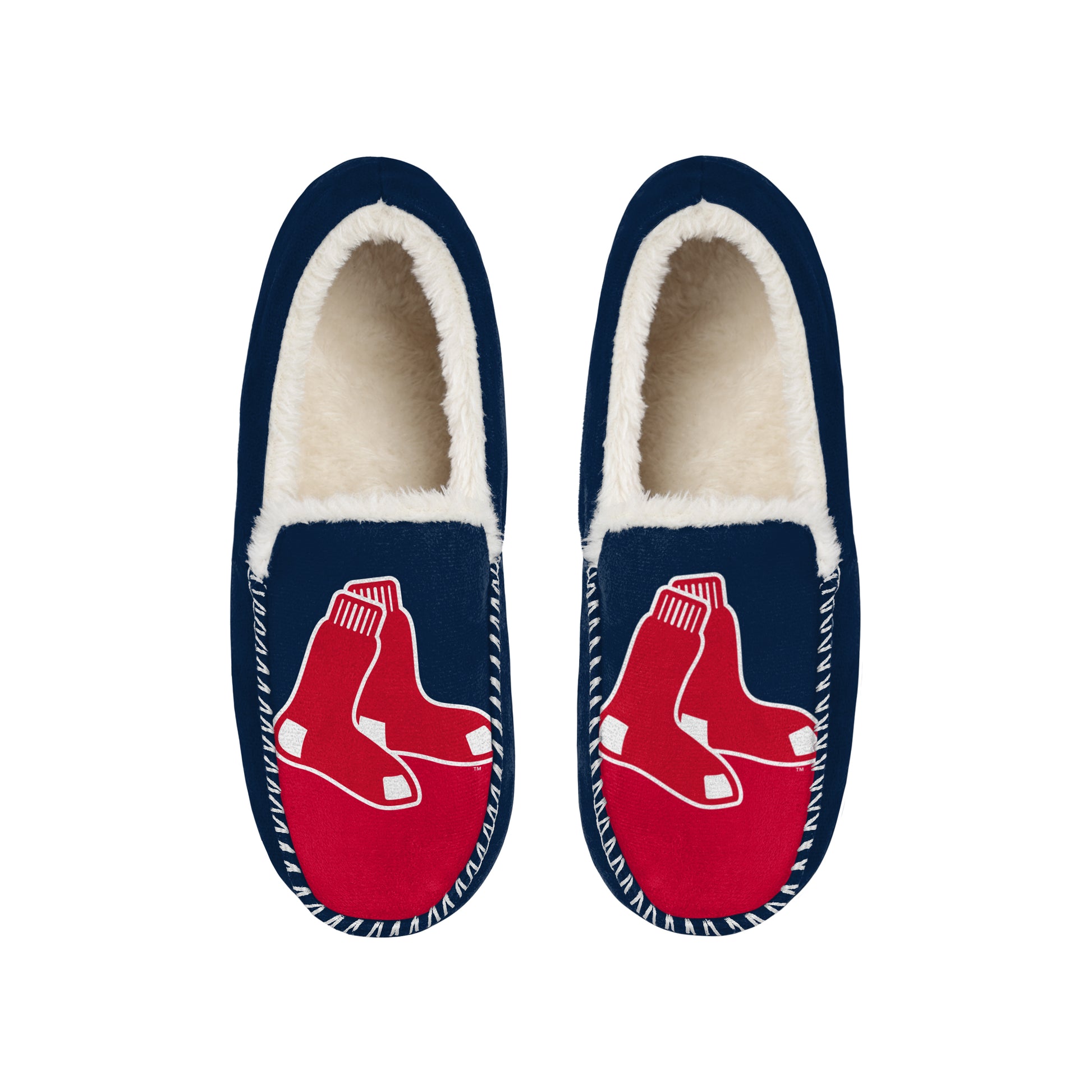 Mantenga sus pies cómodos y cálidos con los nuevos mocasines Boston Red Sox Color block de FOCO. Estos zapatos de casa deslizantes son perfectos para descansar en la casa mientras aseguran un ajuste cómodo con su forro de piel ultra suave. Los mocasines Color Block utilizan gráficos sublimados del equipo en el material de gamuza de los mocasines para asegurarte de que presumas tus Medias Rojas de Boston. ¡espíritu de equipo durante el día del juego!