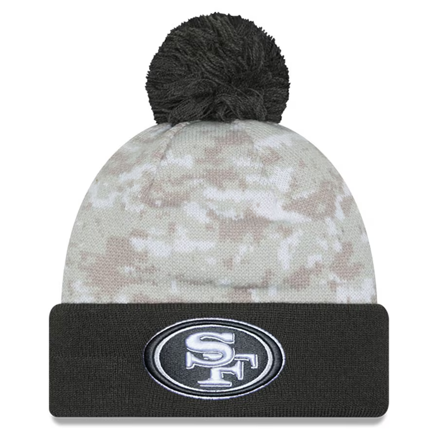 SAN FRANCISCO 49ERS 2024 NFL SALUTE TO SERVICE CUFFED KNIT BEANIE WITH POM - ARTIC WHITE/GRAPHITE