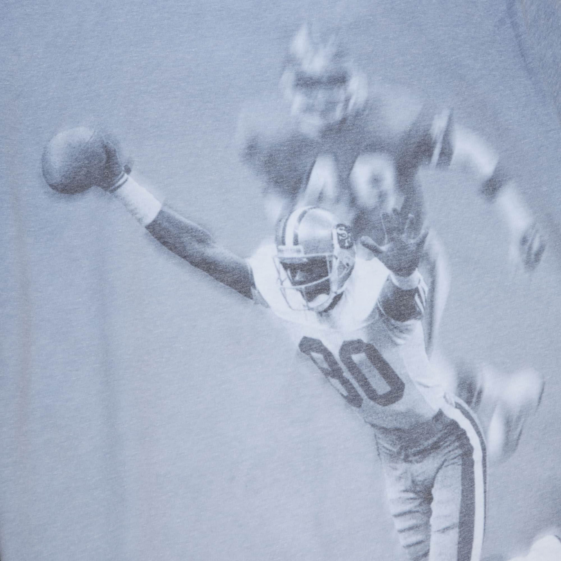Expertly crafted by Mitchell & Ness, the San Francisco 49ers Jerry Rice Men's 4th and Goal T-Shirt combines high quality materials and iconic moments from Jerry Rice's legendary career. With sublimated artwork and short sleeves, this shirt is a must-have for fans looking to show their support for one of the greatest football players of all time.