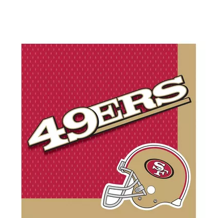 Get ready for the ultimate 49ers party with our San Francisco 49ers Lunch Napkins! Perfect for any 49ers-themed celebration, this must-have decoration will complete your event with style. Whether it's a birthday, game day, tailgate, or Super Bowl party, this plastic table cover will add the perfect touch of team spirit.