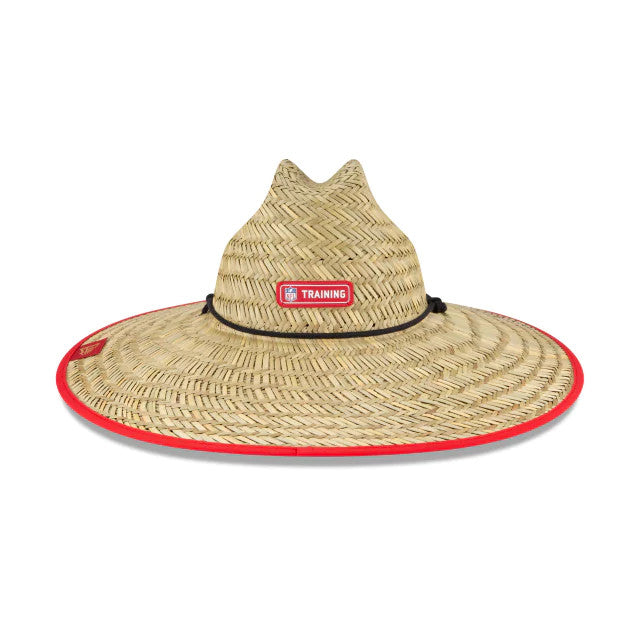 Shield yourself from the sun in style with the official NFL Training Camp Straw hat of the San Francisco 49ers! Made with woven straw and a team color lined brim, it features an embroidered New Era brand tag and an adjustable drawstring for a secure fit. Perfect for any training camp or game day, show your team spirit while staying cool and protected.