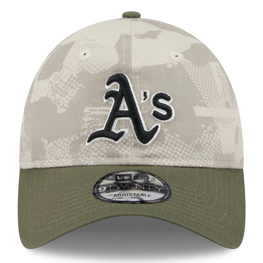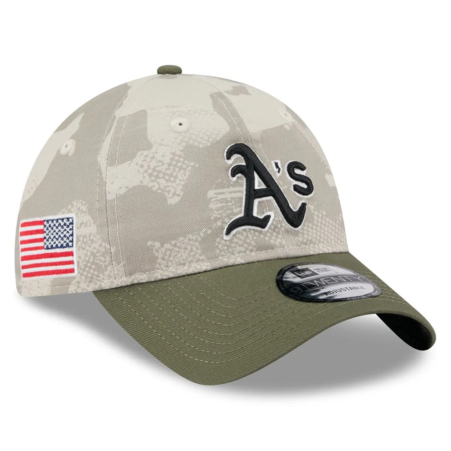 ATHLETICS 2025 MLB ARMED FORCES 9TWENTY ADJUSTABLE HAT - STONE/OLIVE