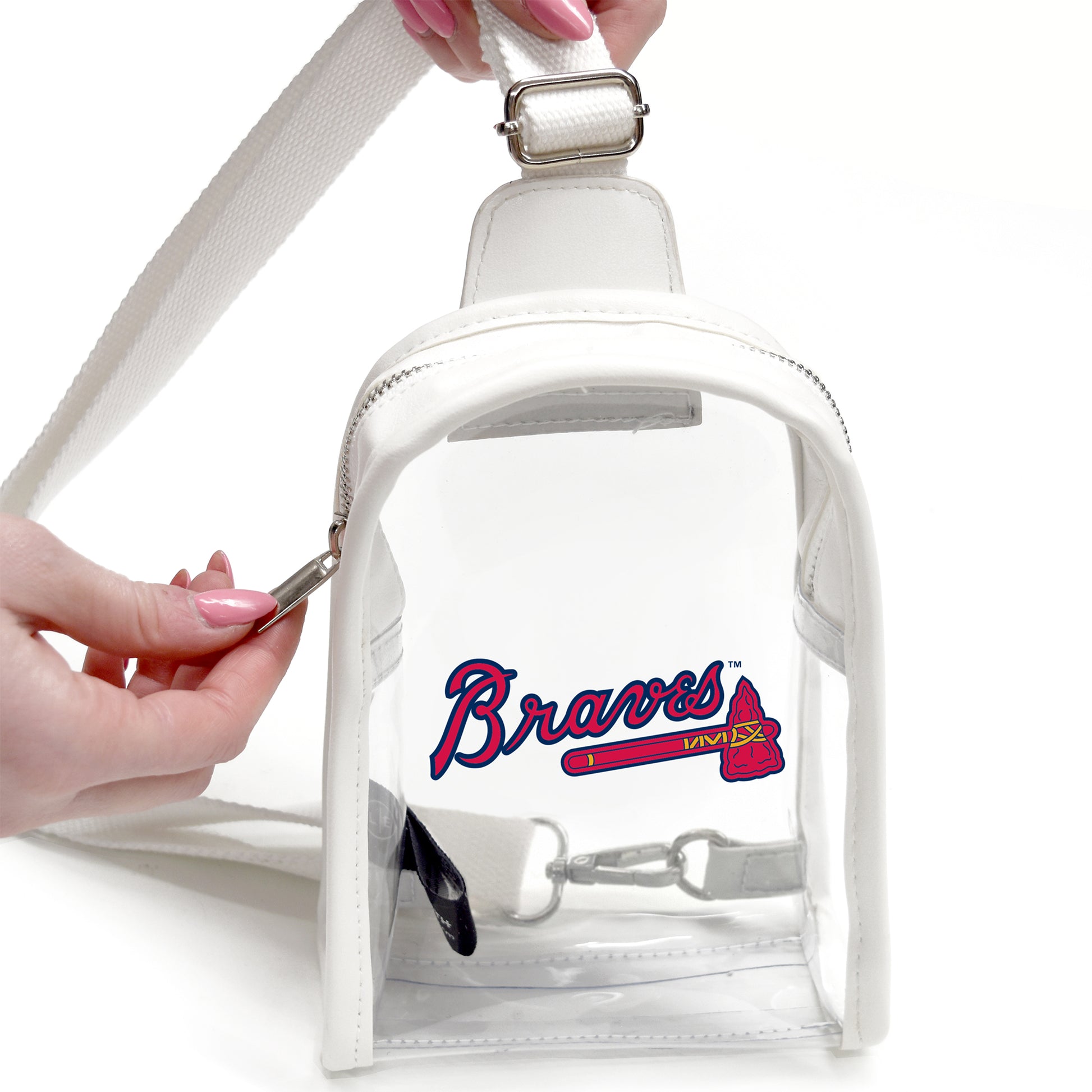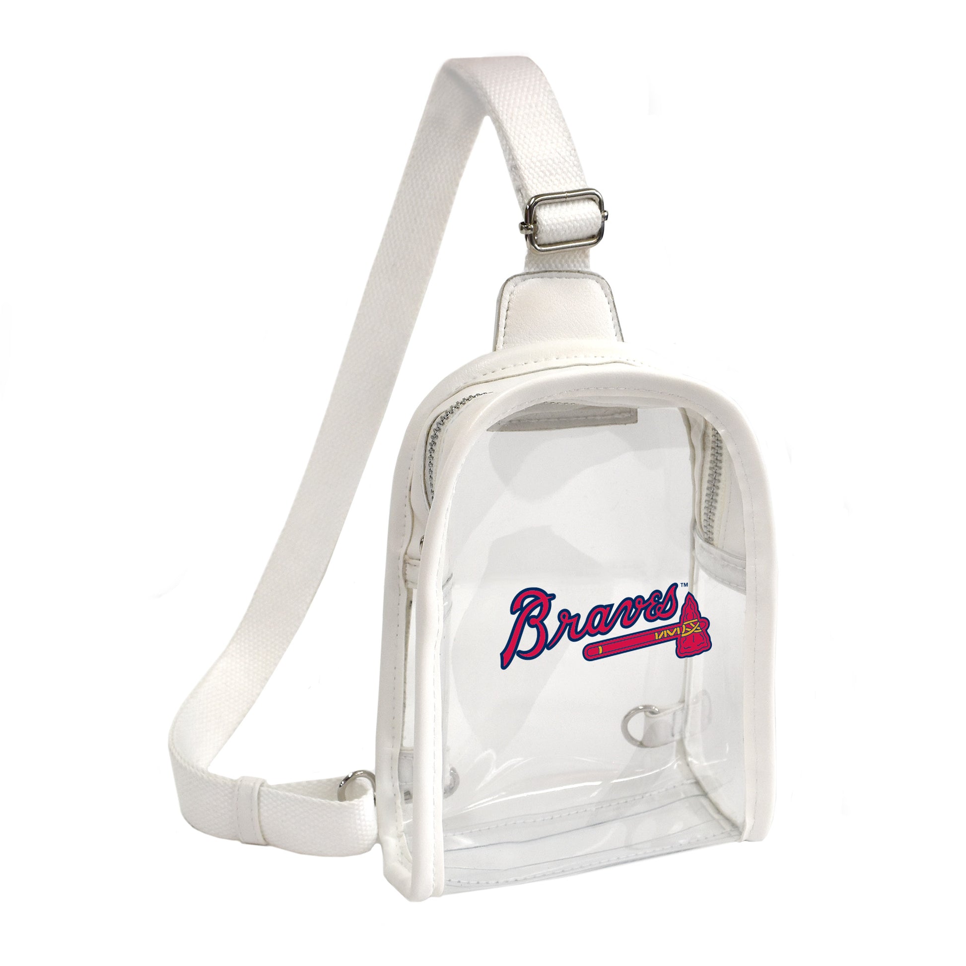 Show your team spirit with the official Atlanta Braves Clear Mini Sling Bag. Get ready for game day in style and safely, complying with stadium regulations. This must-have clear bag is fashionable with white piping and is a single compartment bag made to withstand the weather so you can enjoy stress-free tailgating. With plenty of room to carry items such as your wallet, tickets, and phone, you'll have everything you need to get through security approved and in style.
