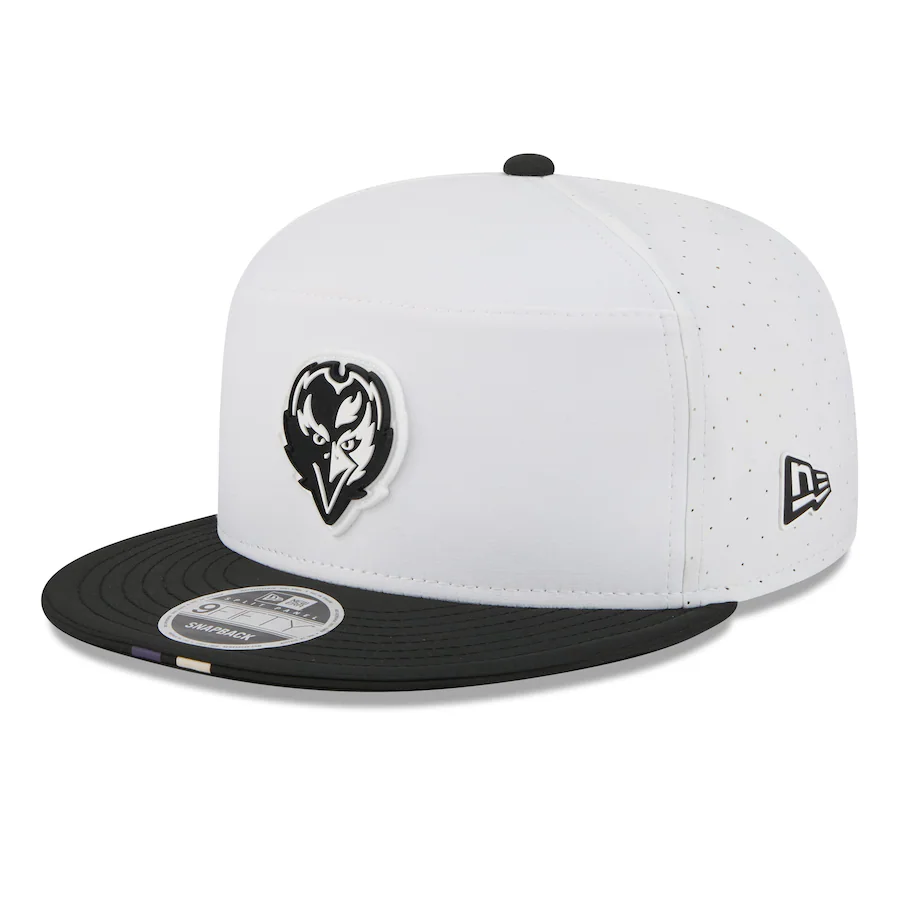 BALTIMORE RAVENS 2025 NFL TRAINING CAMP 9FIFTY SPLIT PANEL SNAPBACK HAT - WHITE