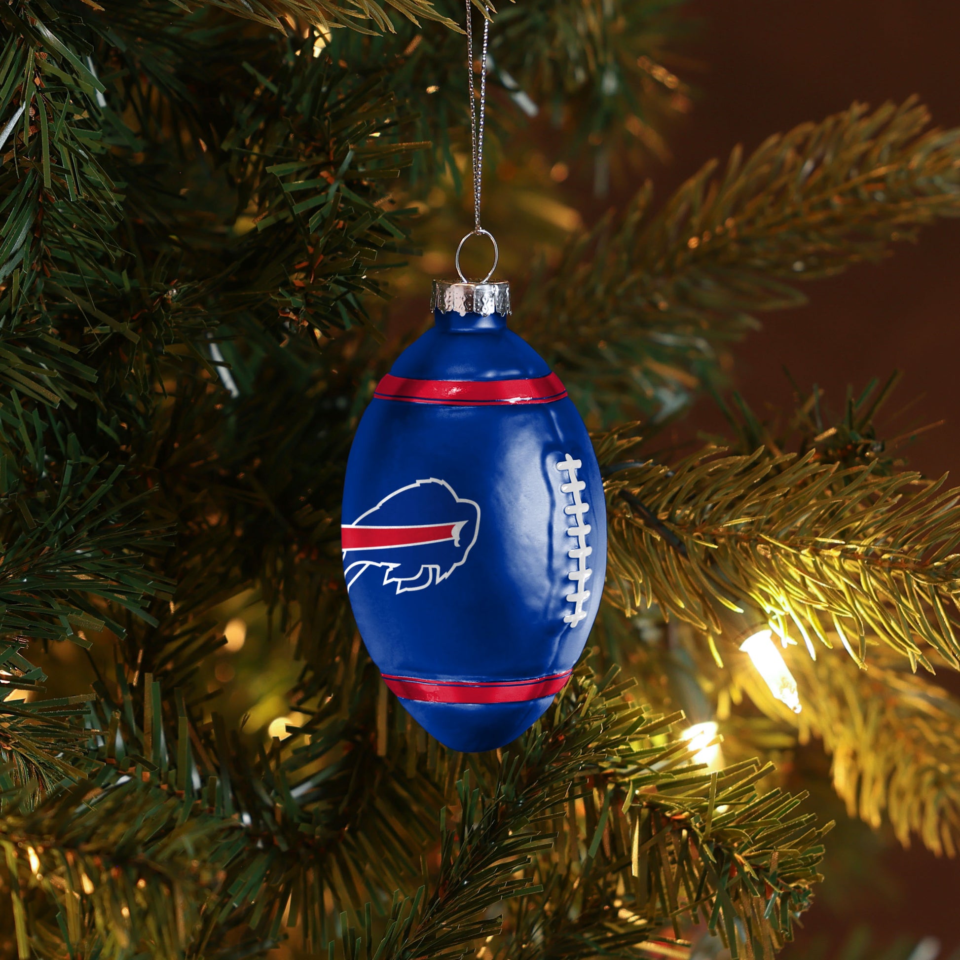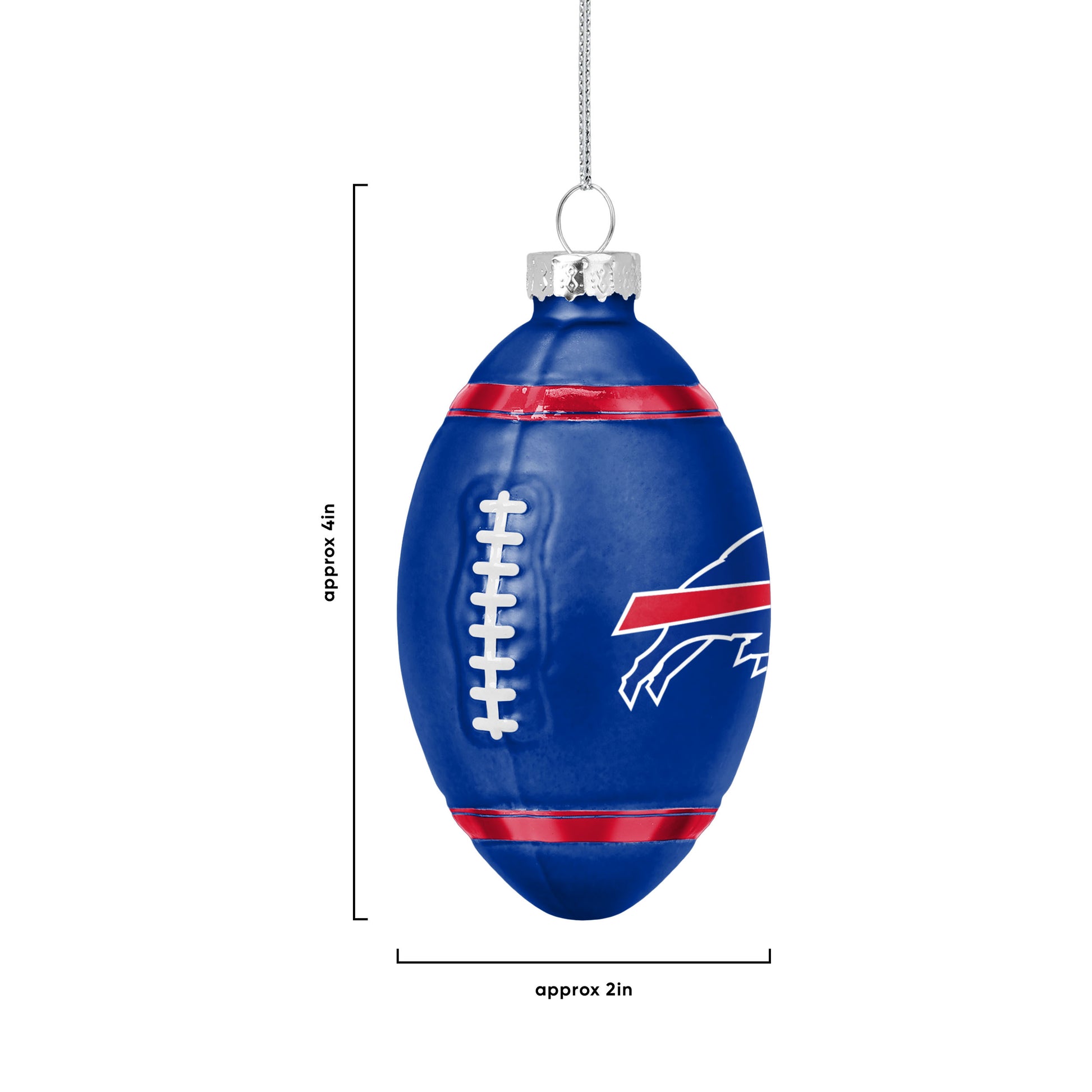 Bring a festive touch of team pride to your holiday decor with the Buffalo Bills Blown Glass Football Ornament by FOCO. Expertly crafted from blown glass, this stunning Bills ornament showcases vibrant team-inspired colors and a detailed football design, making it a standout addition to any Christmas tree. Perfect for creating a Bills Xmas tree theme or enhancing your Bills Christmas decor, this ornament is a must-have for dedicated fans. Whether you're decorating your home or gifting it to a fellow Bills enthusiast, this officially licensed ornament is the ultimate way to celebrate the holidays in style.