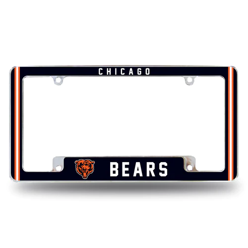 Show your school spirit with the officially licensed Chicago Bears Chrome All Over Frame! Crafted with a chrome metal license plate frame, this frame features a team themed alternate all over design so you can customize your car license plate with your favorite team for the road.