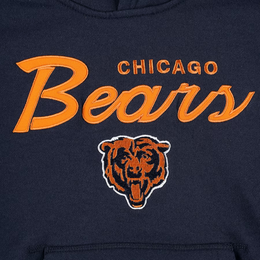 This Chicago Bears Youth The Champ is Here Pullover Hooded Sweatshirt is the perfect cold weather accessory for kids who are fans of the team. It features a pullover hood, embroidered team text and logo, front pouch, and team alternate colorway striping. The comfortable youth size ensures a snug fit and makes it the perfect cold weather must have.