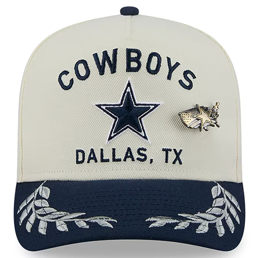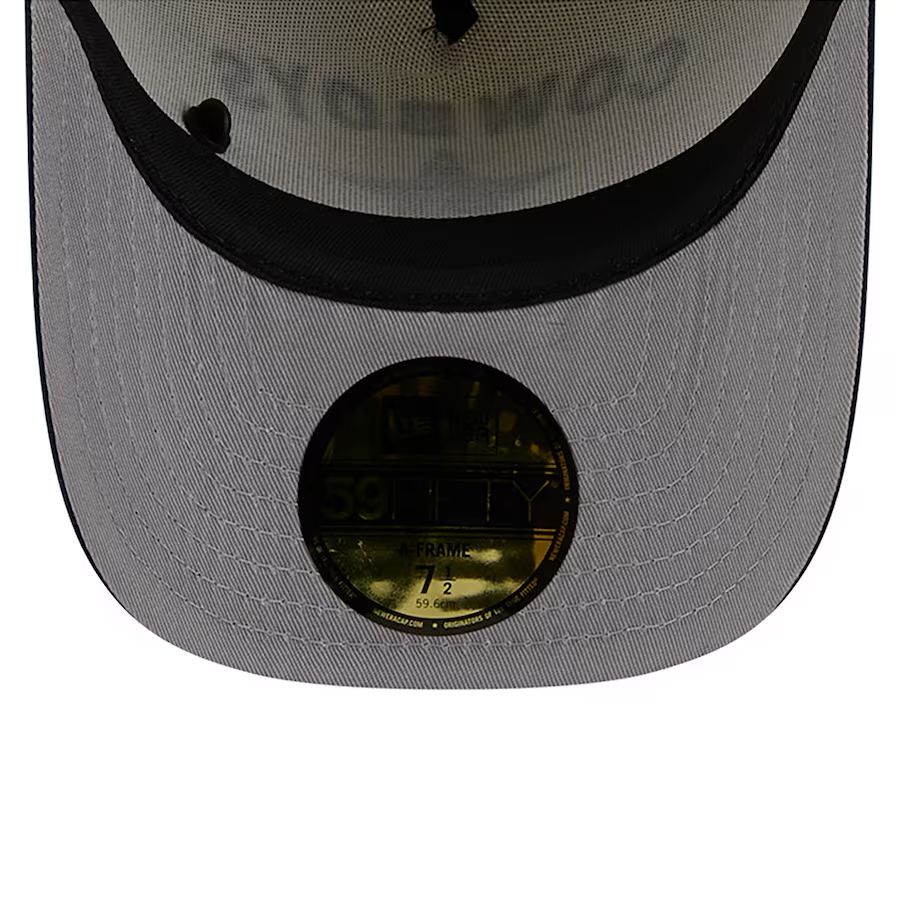 DALLAS COWBOYS 2025 NFL DRAFT A-FRAME 59FIFTY FITTED HAT - CHROME WHITE/NAVY