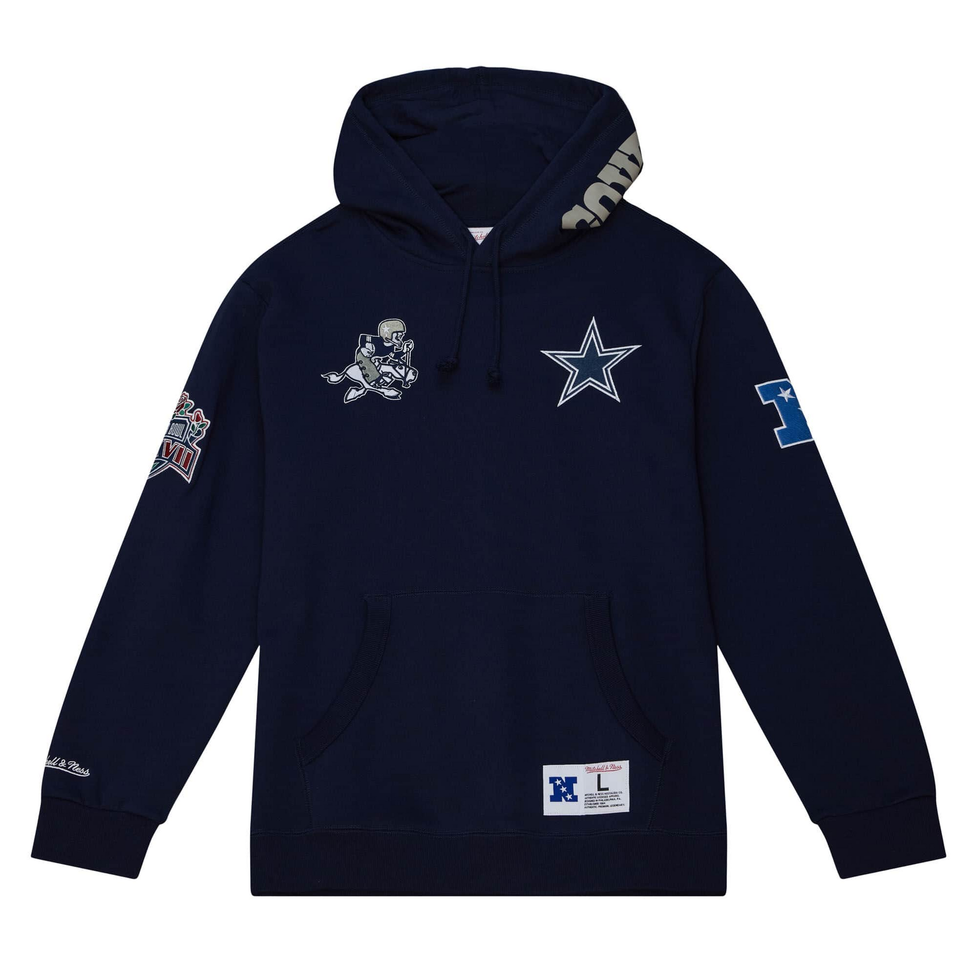 Upgrade your game day outfit with the Dallas Cowboys Men's City Collection Hooded Sweatshirt. Made by Mitchell & Ness, this sweatshirt seamlessly combines quality and style, perfect for representing your team. The pull over style and super soft fit make it comfortable to wear, while the multiple logos showcase your team pride. Get ready to turn heads with this trim fit sweatshirt.