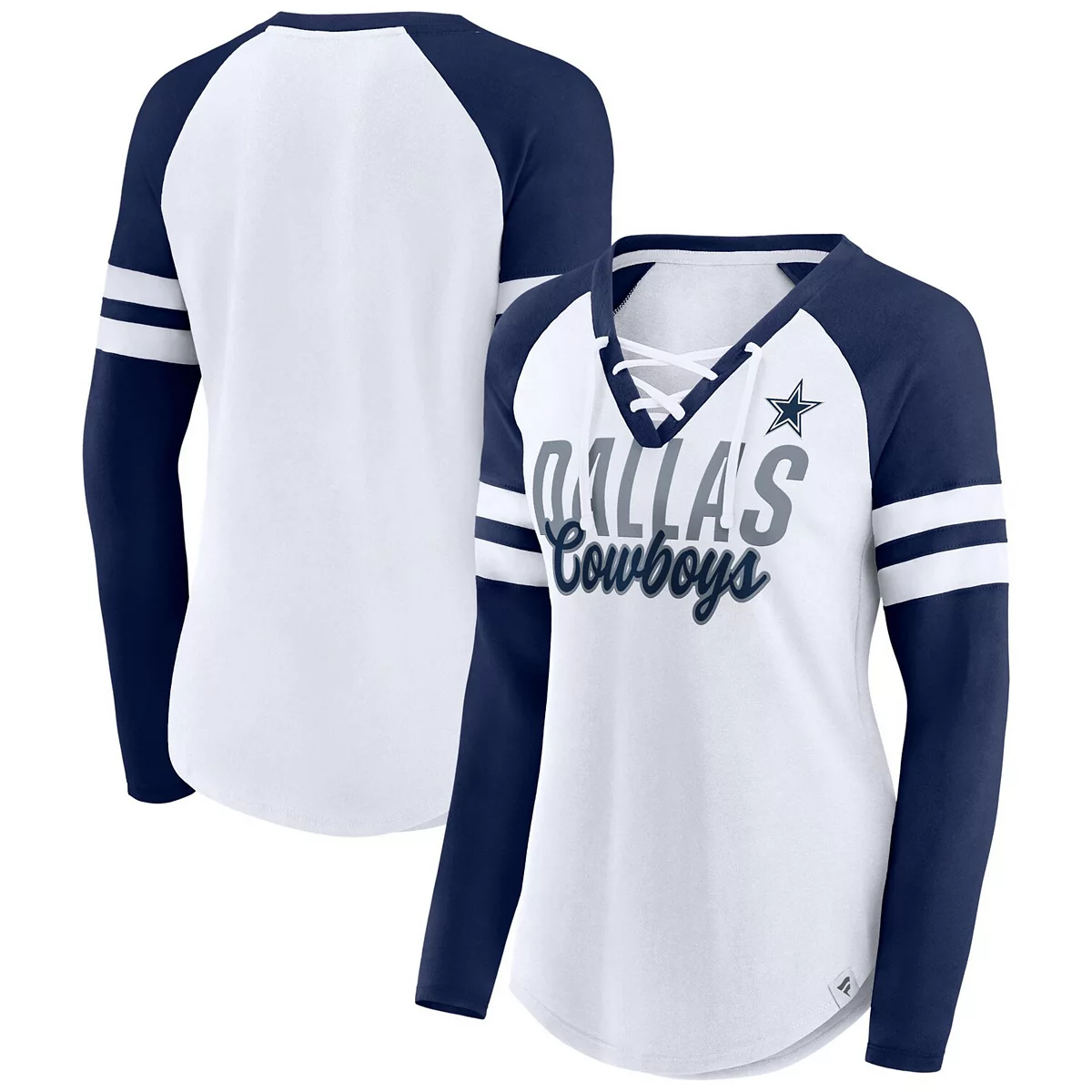 DALLAS COWBOYS WOMEN'S TRUE TO FORM LACE-UP V-NECK LONG SLEEVE