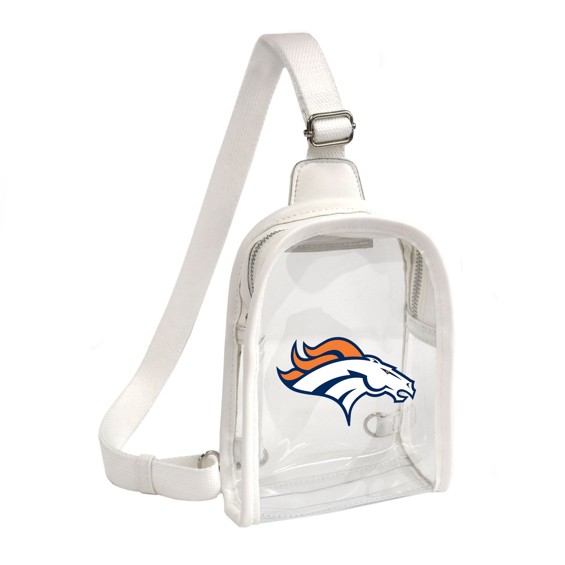 Show your team spirit with the official Denver Broncos Clear Mini Sling Bag. Get ready for game day in style and safely, complying with stadium regulations. This must-have clear bag is fashionable with white piping and is a single compartment bag made to withstand the weather so you can enjoy stress-free tailgating. With plenty of room to carry items such as your wallet, tickets, and phone, you'll have everything you need to get through security approved and in style.
