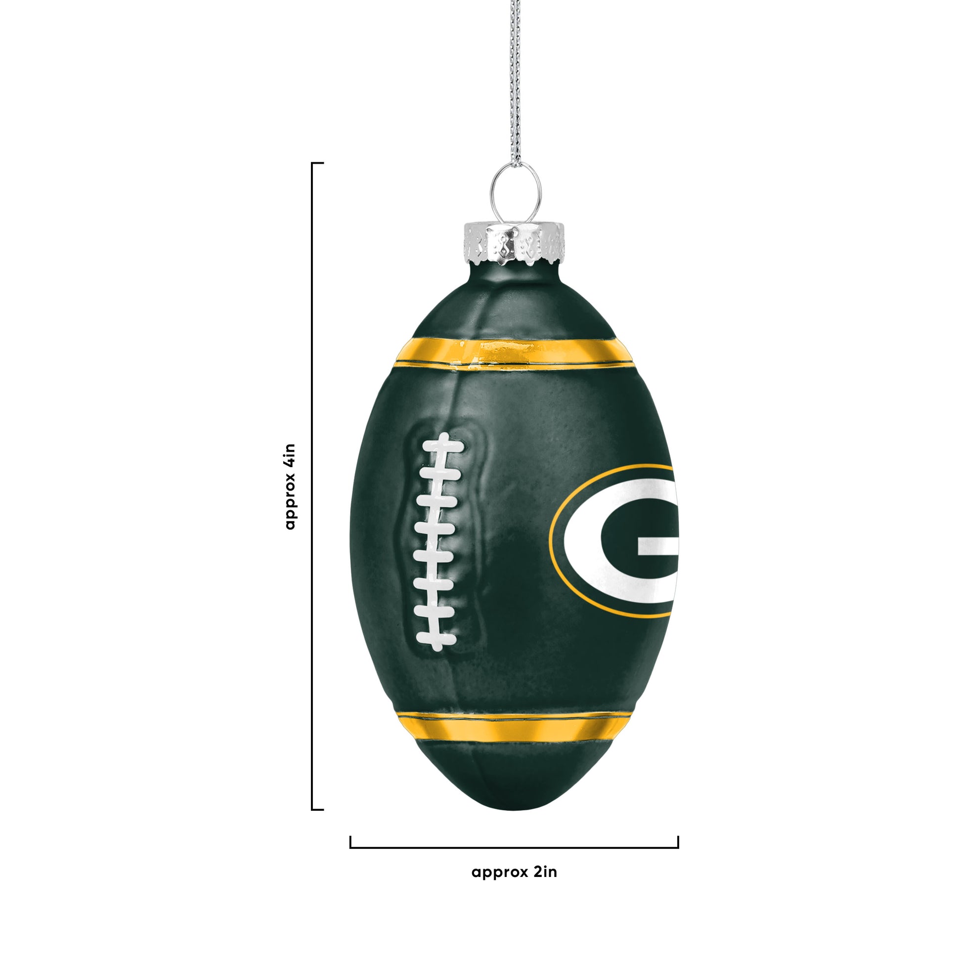 Bring a festive touch of team pride to your holiday decor with the Green Bay Packers Blown Glass Football Ornament by FOCO. Expertly crafted from blown glass, this stunning Packers ornament showcases vibrant team-inspired colors and a detailed football design, making it a standout addition to any Christmas tree. Perfect for creating a Packers Xmas tree theme or enhancing your Packers Christmas decor, this ornament is a must-have for dedicated fans. Whether you're decorating your home or gifting it to a fellow Green Bay Packers enthusiast, this officially licensed ornament is the ultimate way to celebrate the holidays in style.