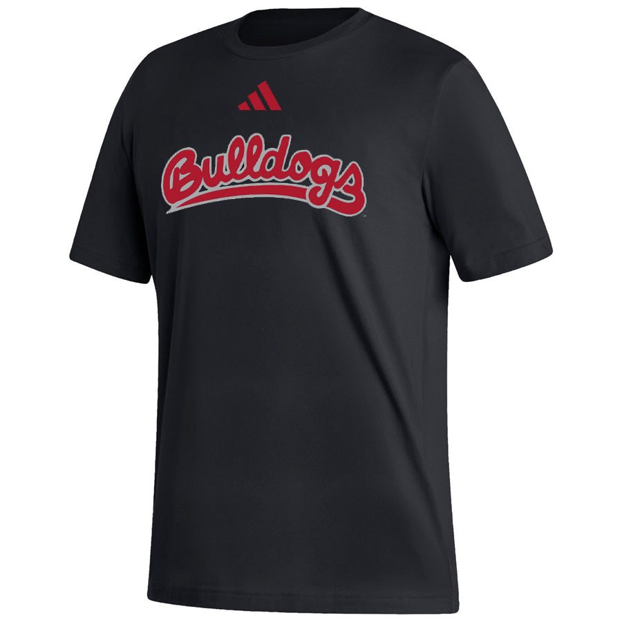Introducing the Fresno State Bulldogs Women's Adidas Fresh 'Bulldog Born. Bulldog Bred.' T-Shirt, a standout piece from the Fresno State Bulldogs Black Out Game Collection. This black t-shirt features striking Fresno State Bulldog branding, including a bold screen-printed Bulldogs script logo in red with silver outlining on the front. Show your team spirit with the slogan "Bulldog Born. Bulldog Bred." printed in silver, complemented by the iconic four-paw logo on the back. Made from soft, breathable fabric, this tee ensures all-day comfort, making it perfect for game days or casual outings. Elevate your fan gear and showcase your loyalty with this essential Adidas t-shirt designed for true Bulldogs supporters!