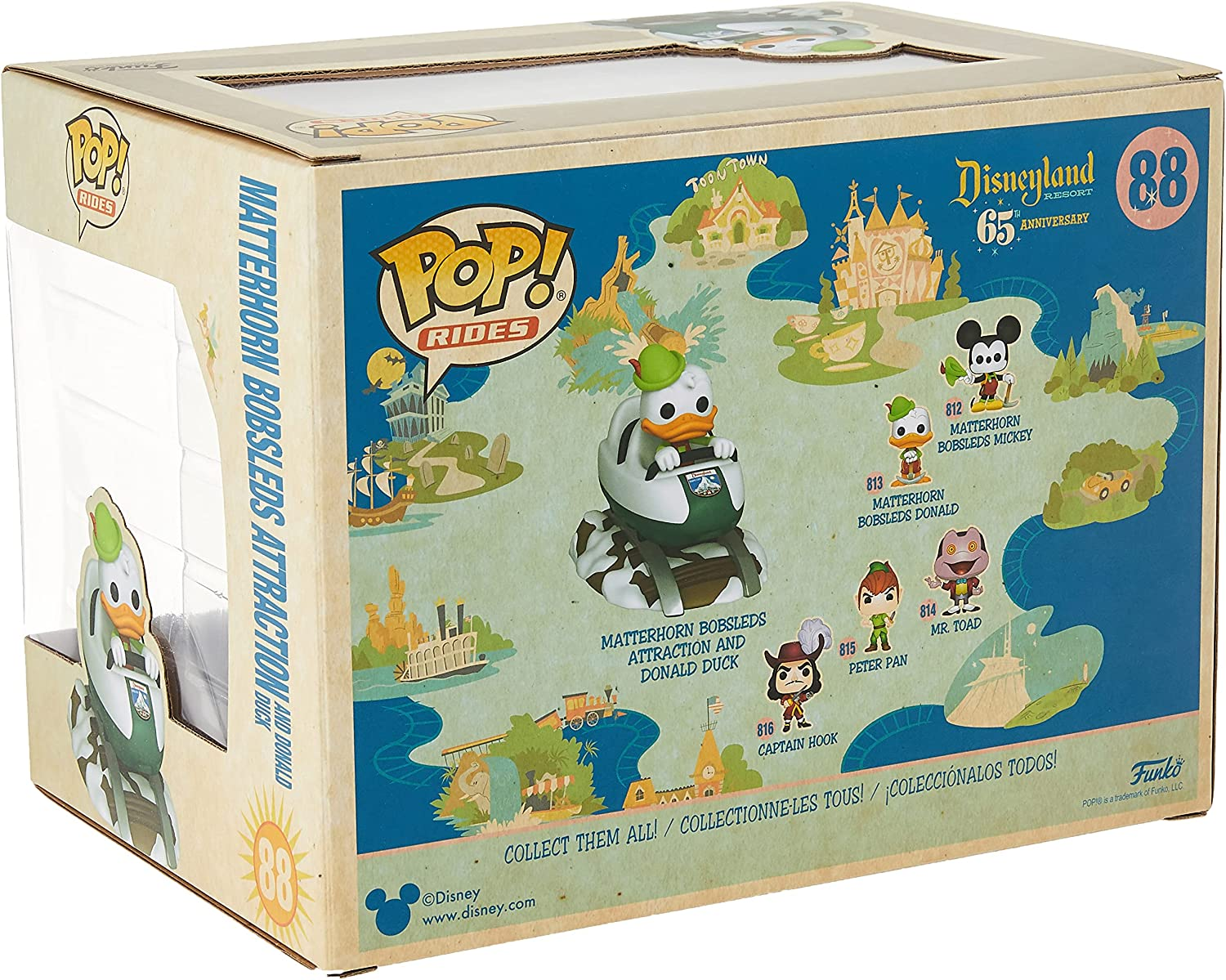 Celebrate the 65th Anniversary of Disneyland with this adorable Pop! Rides vinyl figure! This iconic figure of Donald Duck—seen in Disneyland's Matterhorn Bobsleds attraction—is the perfect addition for any Disney collection.