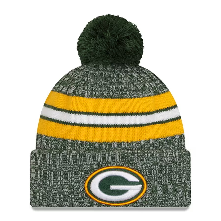 Experience the thrill of being on the NFL sidelines with the Green Bay Packers Youth 2023 NFL Sideline Cuffed Knit with Pom. This beanie is the same style of hat worn by the players on the sidelines on tv. This cuffed rib knit beanie features a one-time removable pom and an embroidered team logo. It is made from a polyester and wool blend lining to keep you warm and comfortable, with an awesome team design. Show off your team spirit with this official piece of NFL apparel.