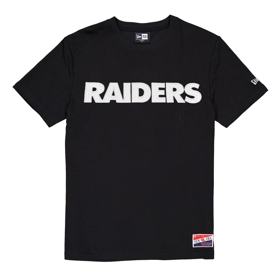 Root for your favorite team in style with this Las Vegas Raiders Men's Script Logo Back T-Shirt! Made by New Era, this short sleeve shirt features an embroidered team wordmark on the chest and large screen printed team logo on the back for a simple yet great design. Perfect for any Raiders fan, show your team pride with this eye-catching shirt.