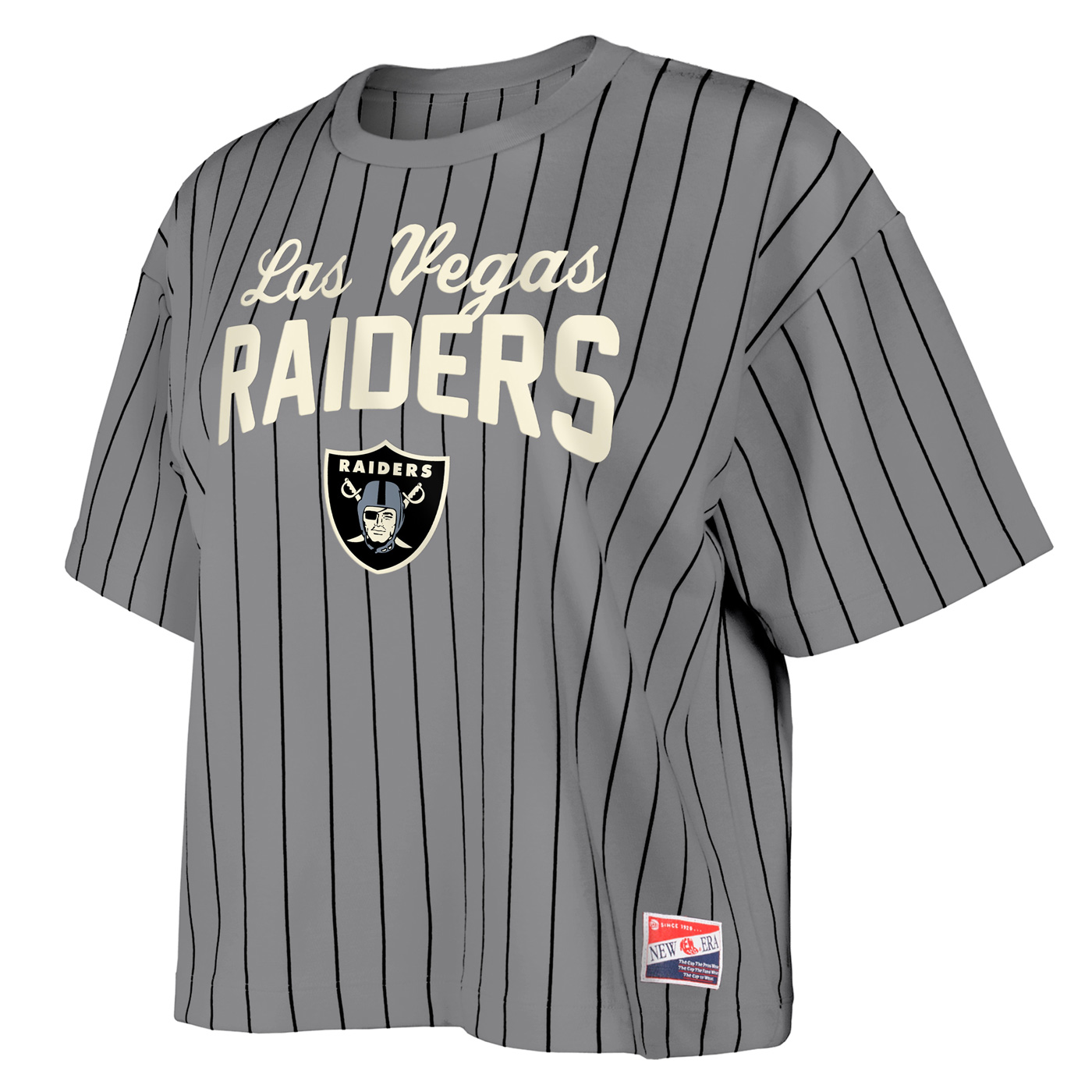 LAS VEGAS RAIDERS WOMEN'S THROWBACK PINSTRIPE CROPPED T-SHIRT - GREY