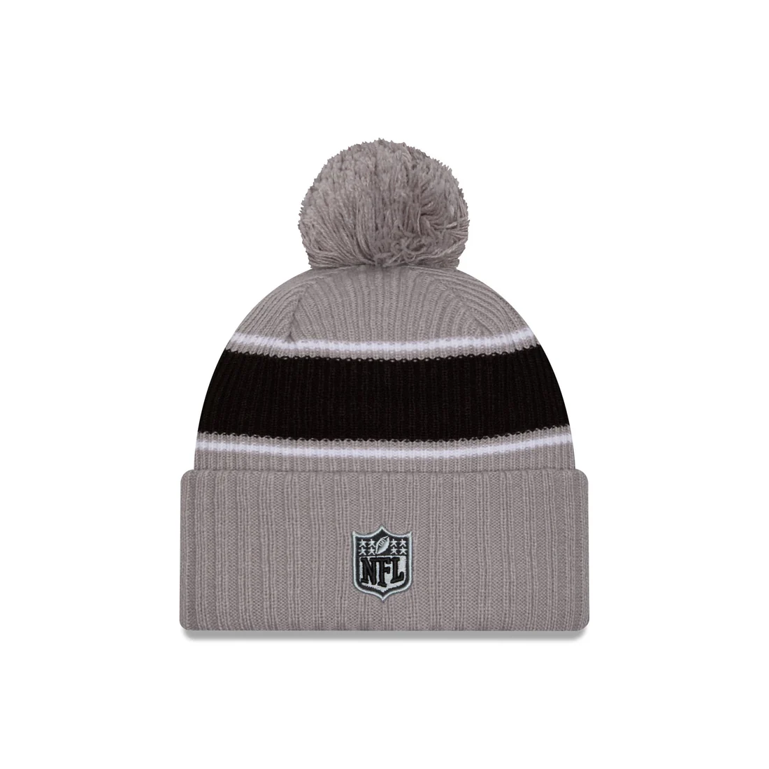 Stay warm and stylish with the Las Vegas Raiders Youth 2024 NFL Sideline Cuffed Knit Beanie - Graphite from the 2024 NFL Sideline collection by New Era. This premium beanie features a one-time removable pom for personal wear preference and showcases your favorite team’s raised embroidered logo, as seen worn on the sidelines by players and staff. The embroidered Chenille team name on the crown adds a touch of flair, while the warm lining ensures comfort on chilly game days. Whether you're in the stands or out and about, this beanie is a must-have for any dedicated fan.