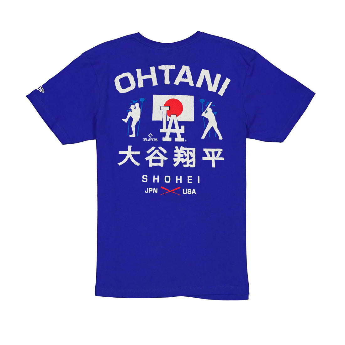 Support your favorite team and player with the Los Angeles Dodgers Shohei Ohtani Men's Flag T-shirt by New Era. Featuring a Japan inspired design and screen printed graphics, this shirt is perfect for showing off your love for the Dodgers and Ohtani. Stand out in the crowd with this unique and stylish shirt. Go Dodgers!