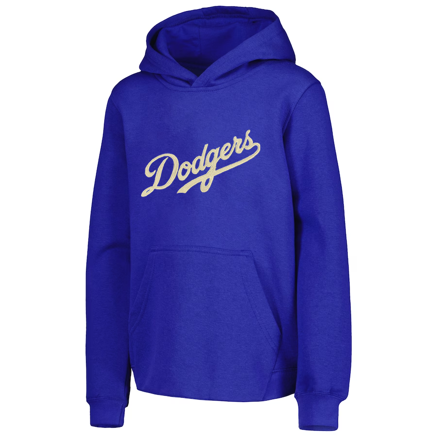 Ensure your young fan is ready for the cooler game days with this Los Angeles Dodgers Youth Wordmark Pullover Hooded Sweatshirt. This youth-sized hoodie features a simple and unmistakable Los Angeles Dodgers fan look, making it perfect for any baseball fan. Stay warm and show your team colors with this hoodie.