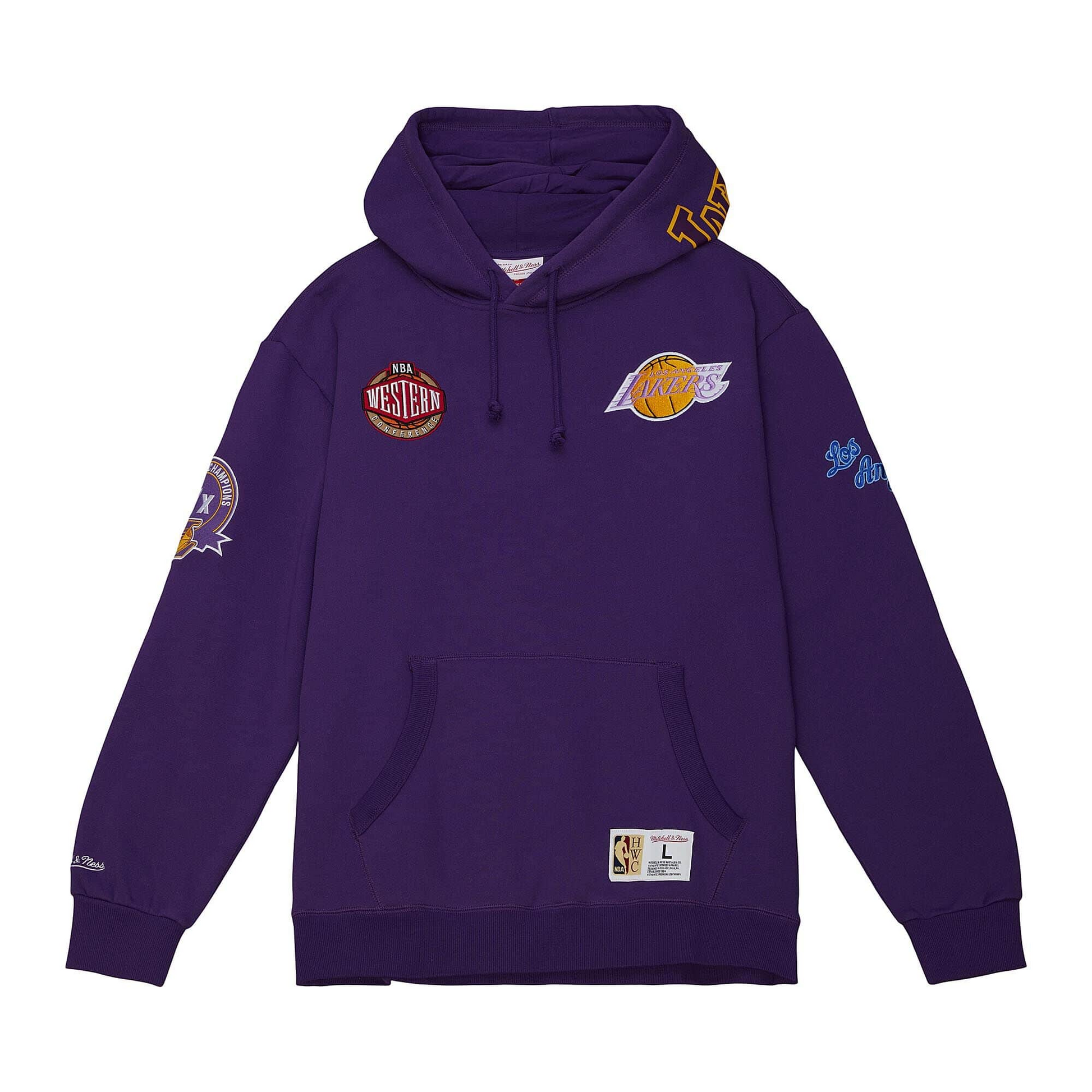 Upgrade your game day outfit with the Los Angeles Lakers Men's City Collection Hooded Sweatshirt. Made by Mitchell & Ness, this sweatshirt seamlessly combines quality and style, perfect for representing your team. The pull over style and super soft fit make it comfortable to wear, while the multiple logos showcase your team pride. Get ready to turn heads with this trim fit sweatshirt.
