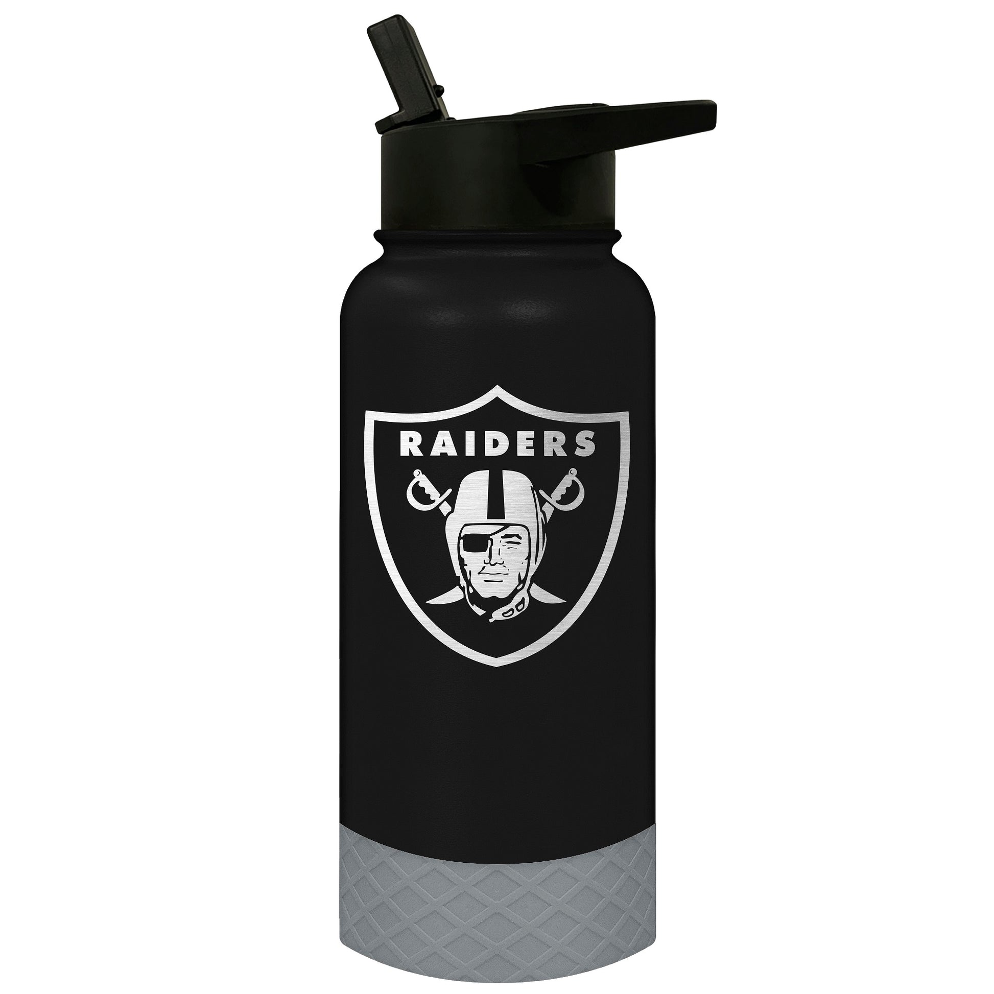 Stay hydrated and show your team pride with the Las Vegas Raiders Thirst Hydration Water Bottle! This 32oz vacuum insulated stainless steel bottle keeps your drinks at the perfect temperature while the laser engraved team logo adds a touch of style. Perfect for any fan, this water bottle is a must-have for on-the-go.