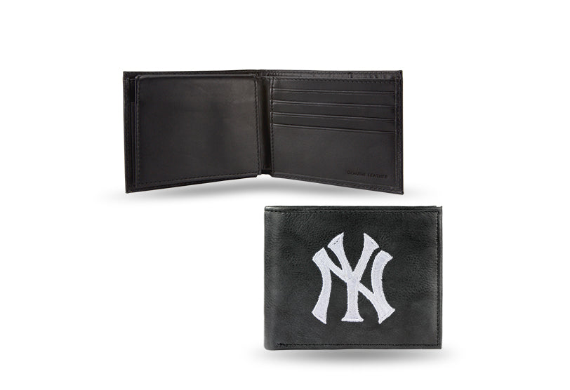 This attractive looking Embroidered Black Leather Billfold Wallet by Rico Industries measures approximately 3-inches by 4-inches. It is decorated with an embroidered full team colored logo and features multiple card slots, ID display slot and bill pocket. This durable wallet with a functional billfold style ensures that your belongings are safe and secure, and is built to withstand general wear and tear. Makes for an excellent gift.