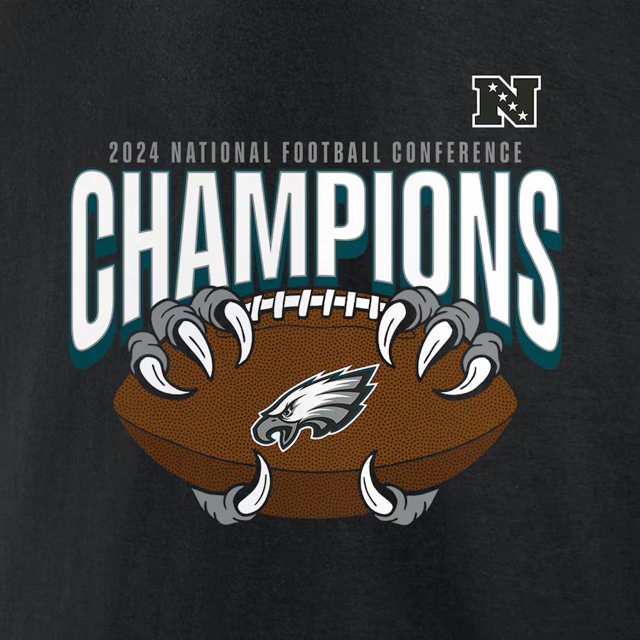 Celebrate the Philadelphia Eagles’ 2024 NFC Conference Championship victory with the Men's "Not Done" T-Shirt! The screen-printed design proudly commemorates their incredible accomplishment in the 2024 NFL season. As the Eagles continue their journey into Super Bowl LIX, this shirt is a perfect way to show your team pride and remind everyone that the Eagles are far from finished. Wear it proudly as the Eagles chase the ultimate victory, ready to come out as Super Bowl champions!
