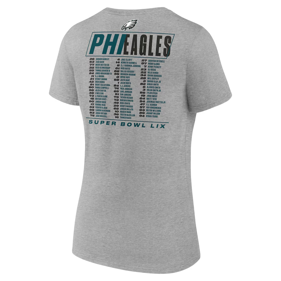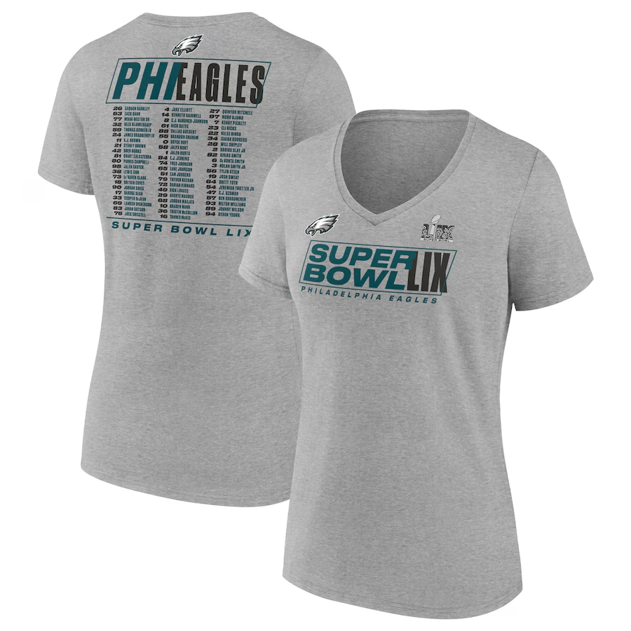 PHILADELPHIA EAGLES WOMEN'S SUPER BOWL LIX ROSTER V-NECK T-SHIRT - HEATHER GRAY