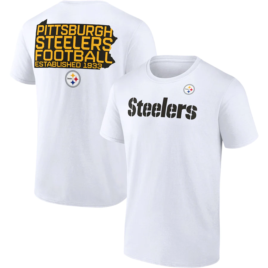 Ensure everybody sees your dedication to the Pittsburgh Steelers by wearing this Hometown Hot Shot T-shirt from Fanatics Branded. It features Steelers graphics printed on the front and an outline of the team's state filled in with a collage that includes the founding year across the back. Lightweight material also makes this tee comfortable to wear all day.