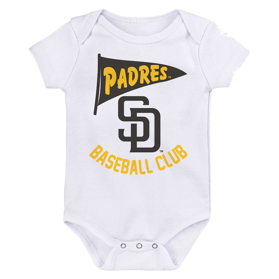 SAN DIEGO PADRES NEWBORN 3-PIECE FAN PENNANT CREEPER SET
