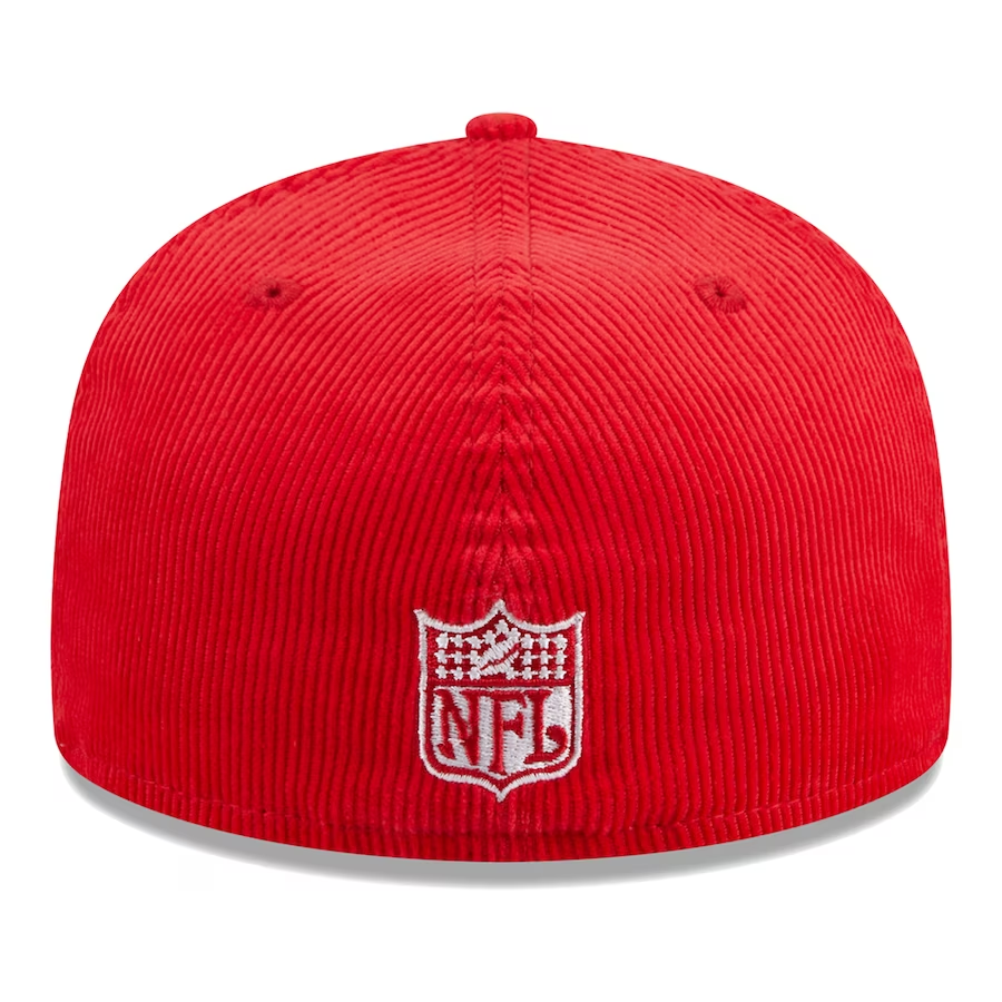Elevate your game day wardrobe with the San Francisco 49ers Throwback Cord 59Fifty Fitted Hat from New Era. Inspired by the 70s, this textured round cord material adds a unique touch to your look. The embroidered team details and pro bowl side patch make a statement, giving you game day vibes. Perfect for any die-hard fan.