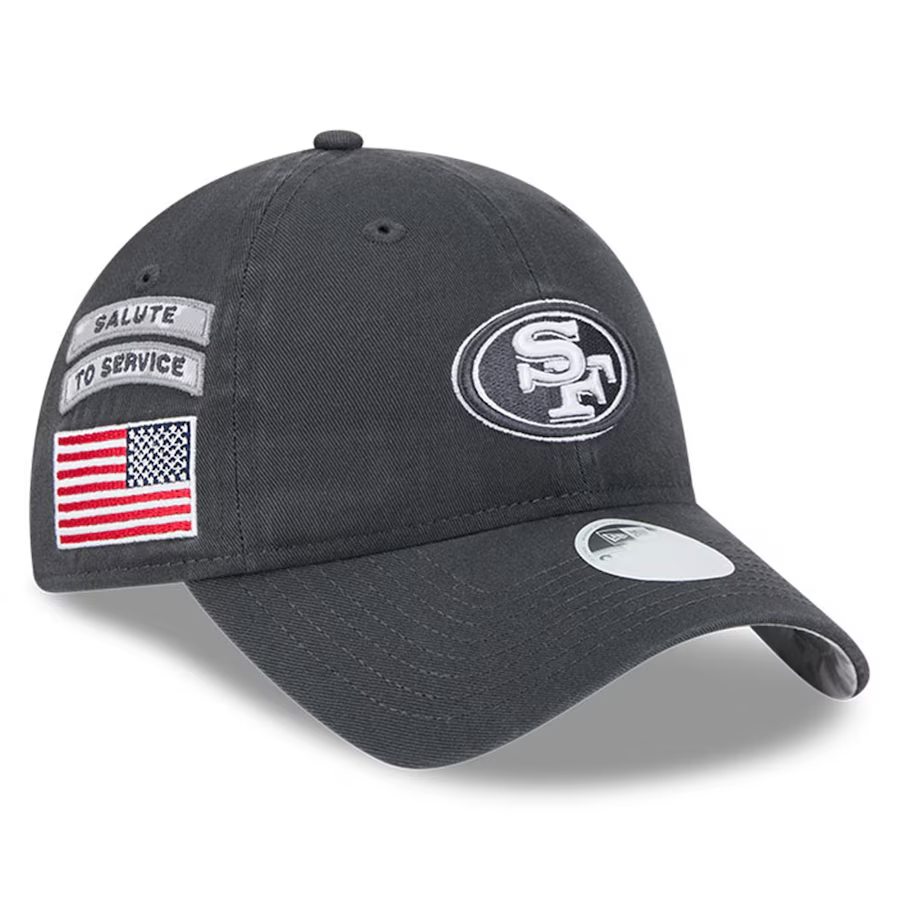 Show your support for our troops with the San Francisco 49ers Women's 2024 NFL Salute to Service 9TWENTY Adjustable Hat! This special edition hat, part of the Salute to Service collection by New Era, features an graphite base theme and an embroidered American Flag side patch. The adjustable fit provides the best comfort and a sleek look . Don't miss your chance to be a part of this NFL initiative and show your pride for both the San Francisco 49ers and our military heroes.